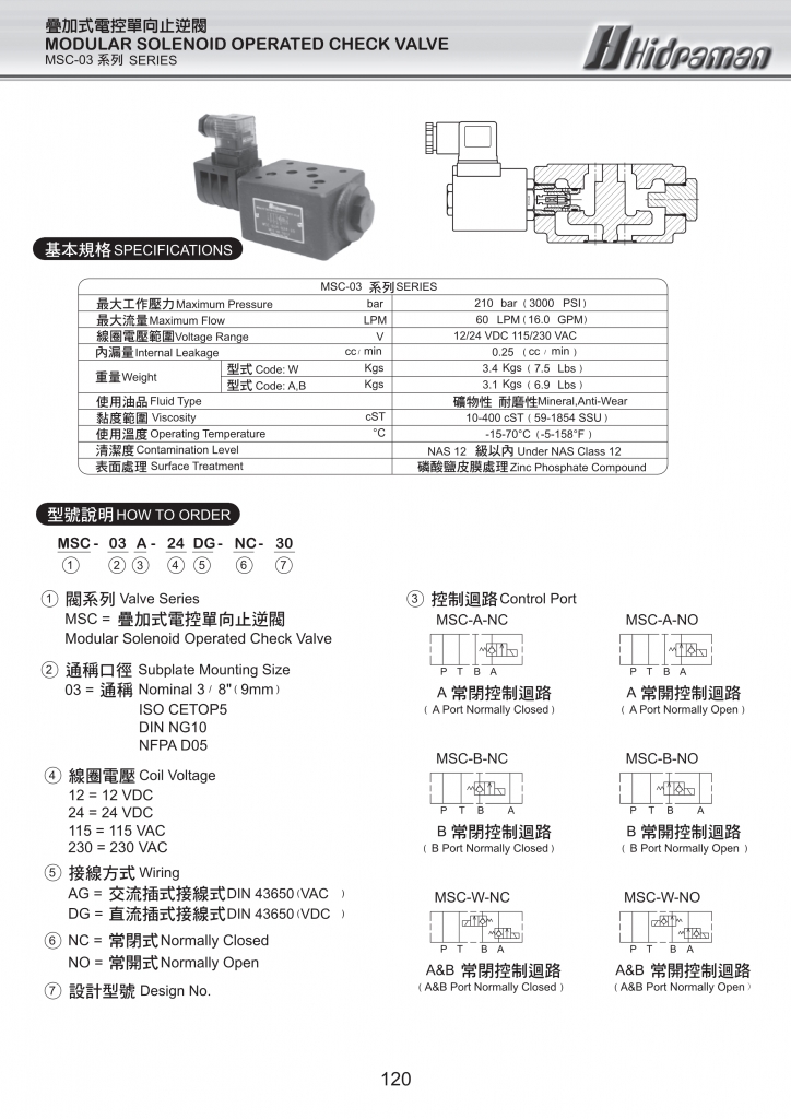 MSC-03系列疊加式電控單向止逆閥常規(guī)型號(hào)參考:MSC-03A-115AG-NC-30 , MSC-03A-115AG-NO-30 , MSC-03A-115DG-NC-30 , MSC-03A-115DG-NO-30 , MSC-03A-12AG-NC-30 , MSC-03A-12AG-NO-30 , MSC-03A-12DG-NC-30 , MSC-03A-12DG-NO-30 , MSC-03A-230AG-NC-30 , MSC-03A-230AG-NO-30 , MSC-03A-230DG-NC-30 , MSC-03A-230DG-NO-30 , MSC-03A-24AG-NC-30 , MSC-03A-24AG-NO-30 , MSC-03A-24DG-NC-30 , MSC-03A-24DG-NO-30 , MSC-03B-115AG-NC-30 , MSC-03B-115AG-NO-30 , MSC-03B-115DG-NC-30 , MSC-03B-115DG-NO-30 , MSC-03B-12AG-NC-30 , MSC-03B-12AG-NO-30 , MSC-03B-12DG-NC-30 , MSC-03B-12DG-NO-30 , MSC-03B-230AG-NC-30 , MSC-03B-230AG-NO-30 , MSC-03B-230DG-NC-30 , MSC-03B-230DG-NO-30 , MSC-03B-24AG-NC-30 , MSC-03B-24AG-NO-30 , MSC-03B-24DG-NC-30 , MSC-03B-24DG-NO-30 , MSC-03W-115AG-NC-30 , MSC-03W-115AG-NO-30 , MSC-03W-115DG-NC-30 , MSC-03W-115DG-NO-30 , MSC-03W-12AG-NC-30 , MSC-03W-12AG-NO-30 , MSC-03W-12DG-NC-30 , MSC-03W-12DG-NO-30 , MSC-03W-230AG-NC-30 , MSC-03W-230AG-NO-30 , MSC-03W-230DG-NC-30 , MSC-03W-230DG-NO-30 , MSC-03W-24AG-NC-30 , MSC-03W-24AG-NO-30 , MSC-03W-24DG-NC-30 , MSC-03W-24DG-NO-30