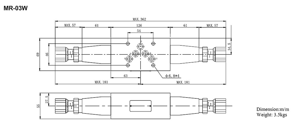 MR MR-02 溢流閥可稱為調(diào)壓閥,亦可稱為安全閥 它在正常工作時(shí)為常開, 並會(huì)將多餘的液壓油排回油箱,以維持液壓 系統(tǒng)的基本穩(wěn)定. 特性 油箱口的背壓應(yīng)儘可能低於5 kg/cm2。 若作為安全閥使用的話,設(shè)定壓力應(yīng)高於最高回路壓力的10 – 15kg/cm2。 規(guī)格 型式號碼 稱呼口徑 (PT) DIA. 最大壓力 (KG/CM2) 最大流量 (LPM) MR-02A (B) (P