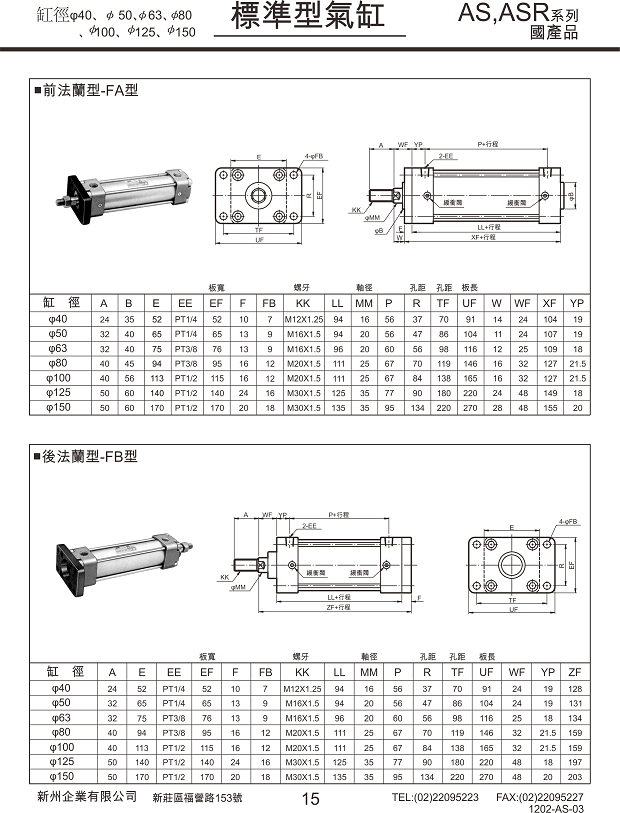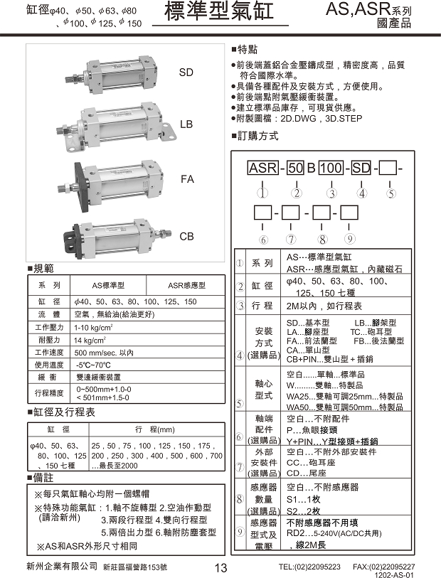 AS標準型氣壓缸