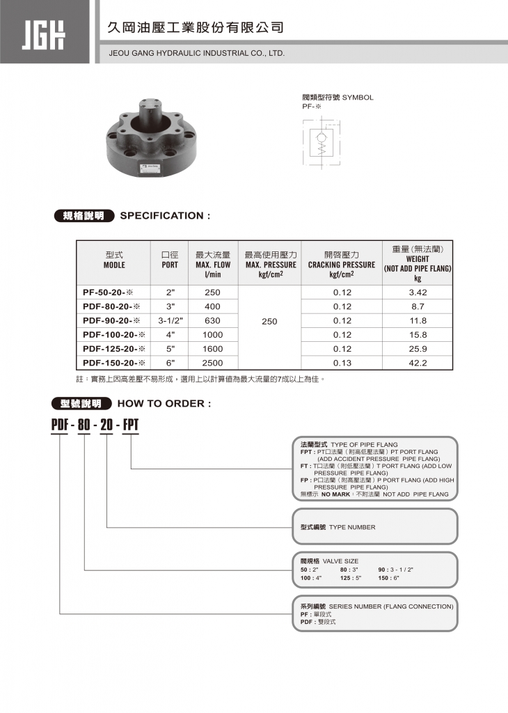 JGH滿油閥常規(guī)型號參考:PF-50-20-FT , PF-50-20-FPT , PF-50-20-FP , PF-50-20 , PDF-90-20-FT , PDF-90-20-FPT , PDF-90-20-FP , PDF-90-20 , PDF-80-20-FT , PDF-80-20-FPT , PDF-80-20-FP , PDF-80-20 , PDF-150-20-FT , PDF-150-20-FPT , PDF-150-20-FP , PDF-150-20 , PDF-125-20-FT , PDF-125-20-FPT , PDF-125-20-FP , PDF-125-20 , PDF-100-20-FT , PDF-100-20-FPT , PDF-100-20-FP , PDF-100-20