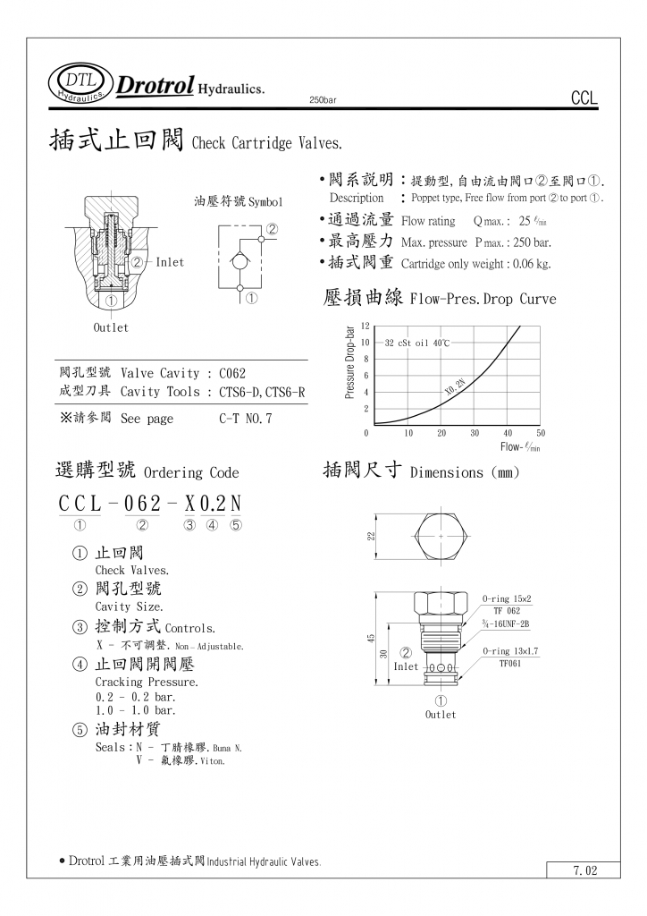 DTL插式止回閥常規(guī)型號參考:CCL-092-X0.2N , CCL-092-X0.2V , CCL-092-X2.0N , CCL-092-X2.0V