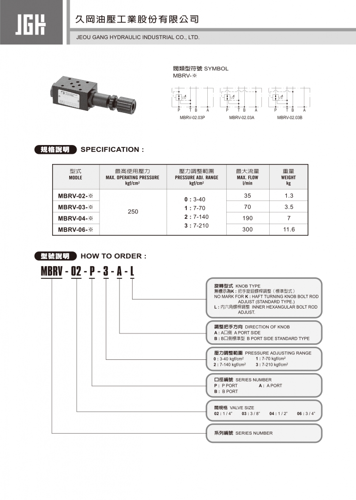 JGH久岡疊加式控制閥部分常規(guī)型號參考:MBRV-02-A-0-A , MBRV-02-A-0-B , MBRV-02-A-1-A , MBRV-02-A-1-B , MBRV-02-A-2-A , MBRV-02-A-2-B , MBRV-02-A-3-A , MBRV-02-A-3-B , MBRV-02-B-0-A , MBRV-02-B-0-B , MBRV-02-B-1-A , MBRV-02-B-1-B , MBRV-02-B-2-A , MBRV-02-B-2-B , MBRV-02-B-3-A , MBRV-02-B-3-B , MBRV-02-P-0-A , MBRV-02-P-0-B , MBRV-02-P-1-A , MBRV-02-P-1-B , MBRV-02-P-2-A , MBRV-02-P-2-B , MBRV-02-P-3-A , MBRV-02-P-3-B , MBRV-03-A-0-A , MBRV-03-A-0-B , MBRV-03-A-1-A , MBRV-03-A-1-B , MBRV-03-A-2-A , MBRV-03-A-2-B , MBRV-03-A-3-A , MBRV-03-A-3-B , MBRV-03-B-0-A , MBRV-03-B-0-B , MBRV-03-B-1-A , MBRV-03-B-1-B , MBRV-03-B-2-A , MBRV-03-B-2-B , MBRV-03-B-3-A , MBRV-03-B-3-B , MBRV-03-P-0-A , MBRV-03-P-0-B , MBRV-03-P-1-A , MBRV-03-P-1-B , MBRV-03-P-2-A , MBRV-03-P-2-B , MBRV-03-P-3-A , MBRV-03-P-3-B , MBRV-04-A-0-A , MBRV-04-A-0-B , MBRV-04-A-1-A , MBRV-04-A-1-B , MBRV-04-A-2-A , MBRV-04-A-2-B , MBRV-04-A-3-A , MBRV-04-A-3-B , MBRV-04-B-0-A , MBRV-04-B-0-B , MBRV-04-B-1-A , MBRV-04-B-1-B , MBRV-04-B-2-A , MBRV-04-B-2-B , MBRV-04-B-3-A , MBRV-04-B-3-B , MBRV-04-P-0-A , MBRV-04-P-0-B , MBRV-04-P-1-A , MBRV-04-P-1-B , MBRV-04-P-2-A , MBRV-04-P-2-B , MBRV-04-P-3-A , MBRV-04-P-3-B , MBRV-06-A-0-A , MBRV-06-A-0-B , MBRV-06-A-1-A , MBRV-06-A-1-B , MBRV-06-A-2-A , MBRV-06-A-2-B , MBRV-06-A-3-A , MBRV-06-A-3-B , MBRV-06-B-0-A , MBRV-06-B-0-B , MBRV-06-B-1-A , MBRV-06-B-1-B , MBRV-06-B-2-A , MBRV-06-B-2-B , MBRV-06-B-3-A , MBRV-06-B-3-B , MBRV-06-P-0-A , MBRV-06-P-0-B , MBRV-06-P-1-A , MBRV-06-P-1-B , MBRV-06-P-2-A , MBRV-06-P-2-B , MBRV-06-P-3-A , MBRV-06-P-3-B