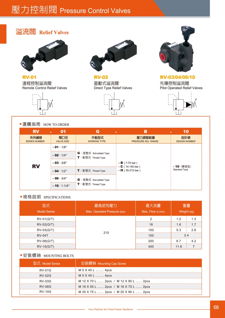 ASHUN油順壓力控制閥 RV系列溢流閥