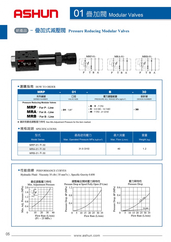 ASHUN疊加式減壓閥常規(guī)型號參考:MRA-01-B-30 , MRA-01-C-30 , MRA-01-H-30 , MRB-01-B-30 , MRB-01-C-30 , MRB-01-H-30 , MRP-01-B-30 , MRP-01-C-30 , MRP-01-H-30