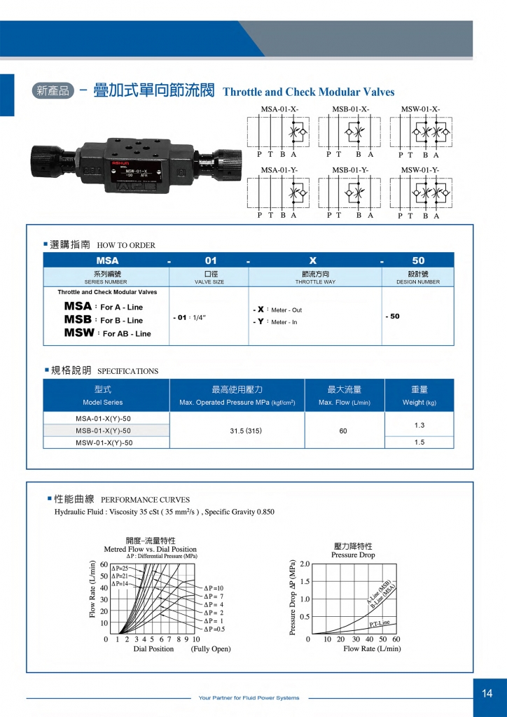 ASHUN疊加式單向節(jié)流閥常規(guī)型號(hào)參考:MSA-01-X-50 , MSA-01-Y-50 , MSB-01-X-50 , MSB-01-Y-50 , MSW-01-X-50 , MSW-01-Y-50