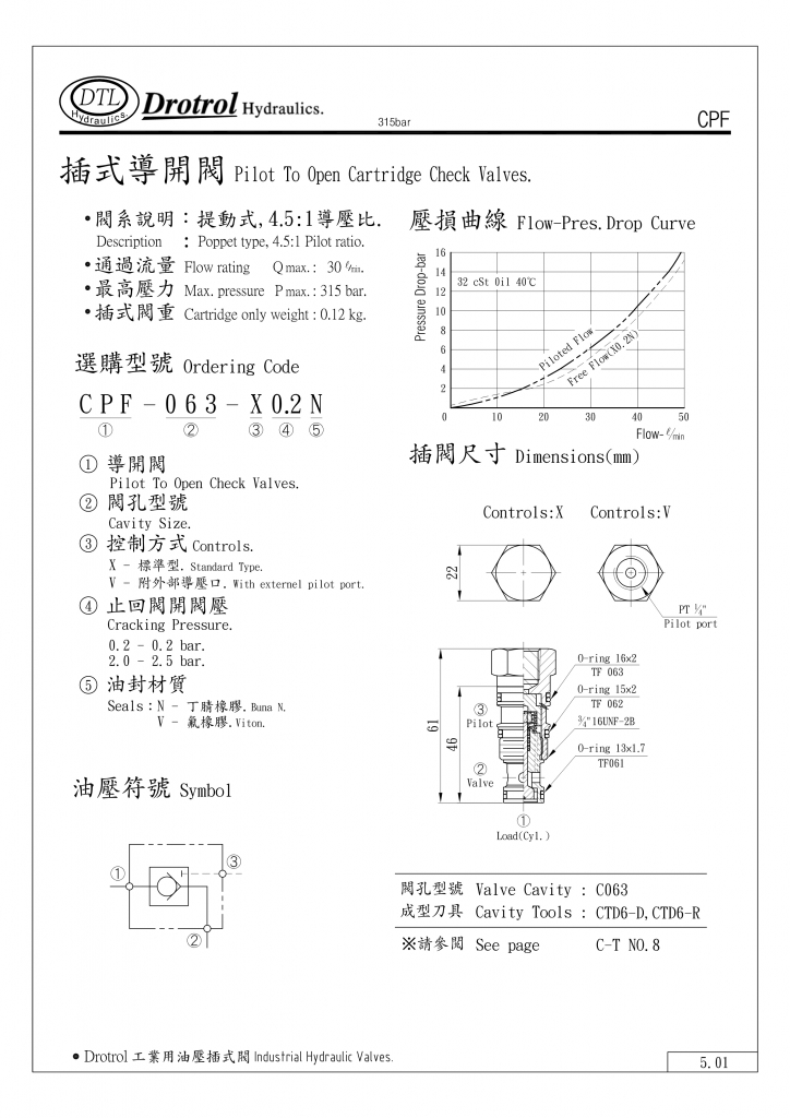 DTL插式導(dǎo)開閥部分常規(guī)型號參考:CPF-063-V0.2N , CPF-063-V0.2V , CPF-063-V2.0N , CPF-063-V2.0V , CPF-063-X0.2N , CPF-063-X0.2V , CPF-063-X2.0N , CPF-063-X2.0V ,