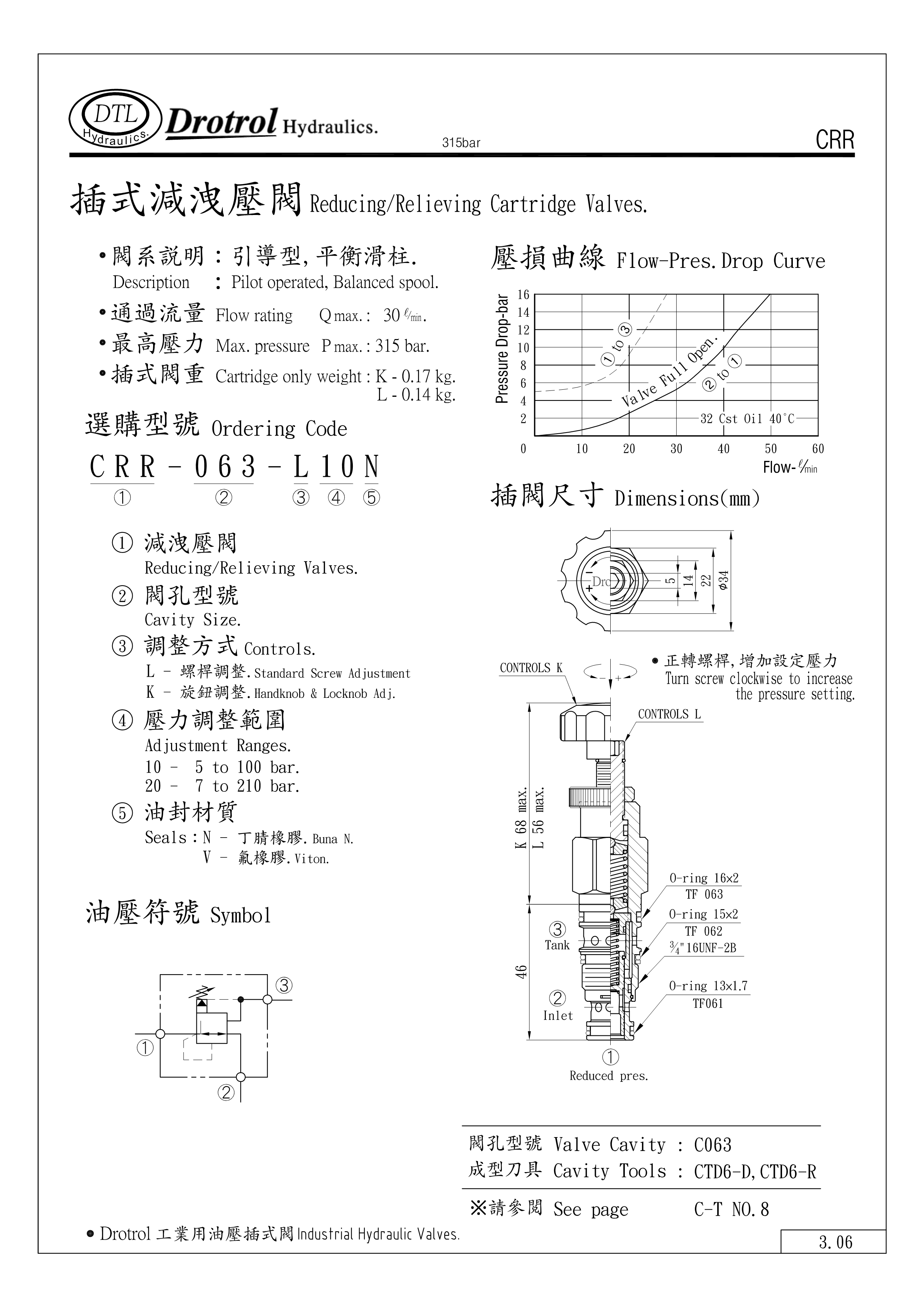 DTL插式減洩壓閥部分常規(guī)型號(hào)參考:CRR-063-K10N , CRR-063-K10V , CRR-063-K20N , CRR-063-K20V , CRR-063-L10N , CRR-063-L10V , CRR-063-L20N , CRR-063-L20V , CRR-093-K10N , CRR-093-K10V , CRR-093-K20N , CRR-093-K20V , CRR-093-L10N , CRR-093-L10V , CRR-093-L20N , CRR-093-L20V , CRR-T02-K10N , CRR-T02-K10V , CRR-T02-K20N , CRR-T02-K20V , CRR-T02-L10N , CRR-T02-L10V , CRR-T02-L20N , CRR-T02-L20V , CRR-T11-K10N , CRR-T11-K10V , CRR-T11-K20N , CRR-T11-K20V , CRR-T11-L10N , CRR-T11-L10V , CRR-T11-L20N , CRR-T11-L20V ,