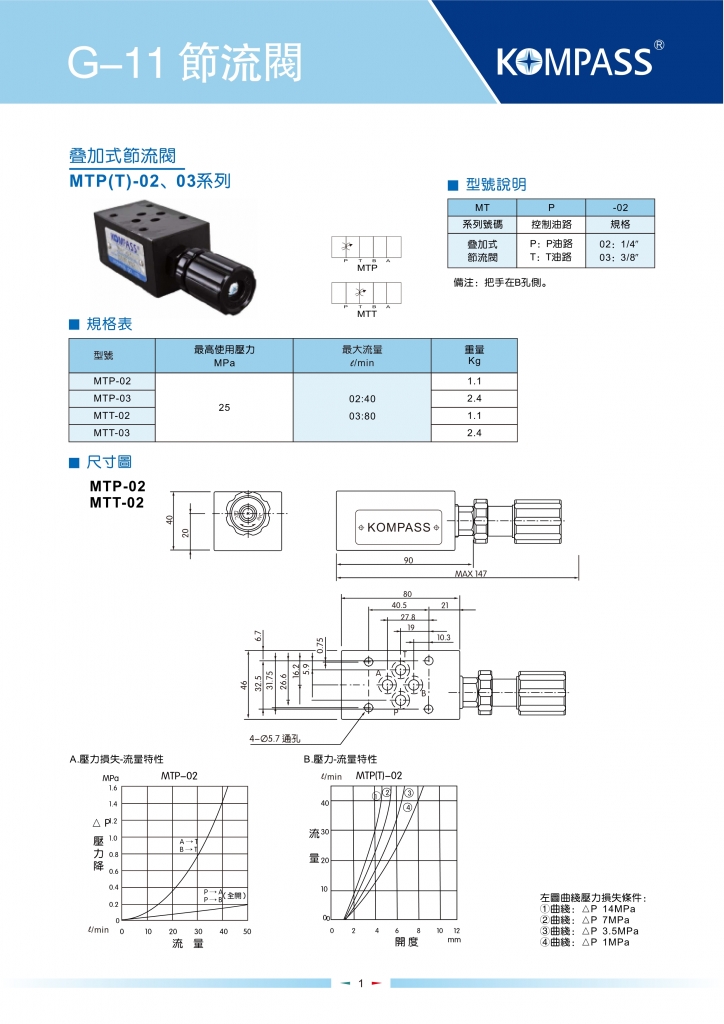 KOMPASS疊加式節(jié)流閥部分常規(guī)型號參考:MTP-02 , MTT-02 , MTP-03 , MTP-03