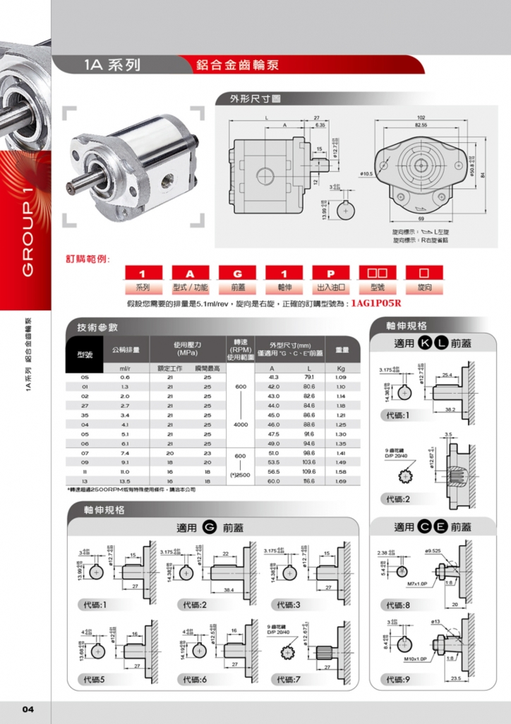 HONORA鈺盟齒輪泵 1A系列鋁合金齒輪泵