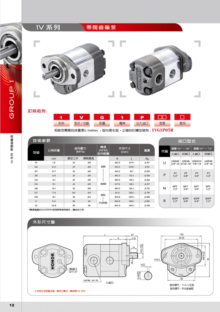 HONOR齒輪泵部分常規(guī)型號參考:1VG1P11R , 1VG1P13R , 1VG1P27R , 1VG1P35R , 1VG1P09R , 1VG1P07R , 1VG1P06R , 1VG1P05R , 1VG1P04R , 1VG1P02R , 1VG1P01R