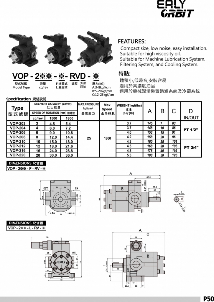 EALY弋力液壓油泵 VOP系列潤滑泵