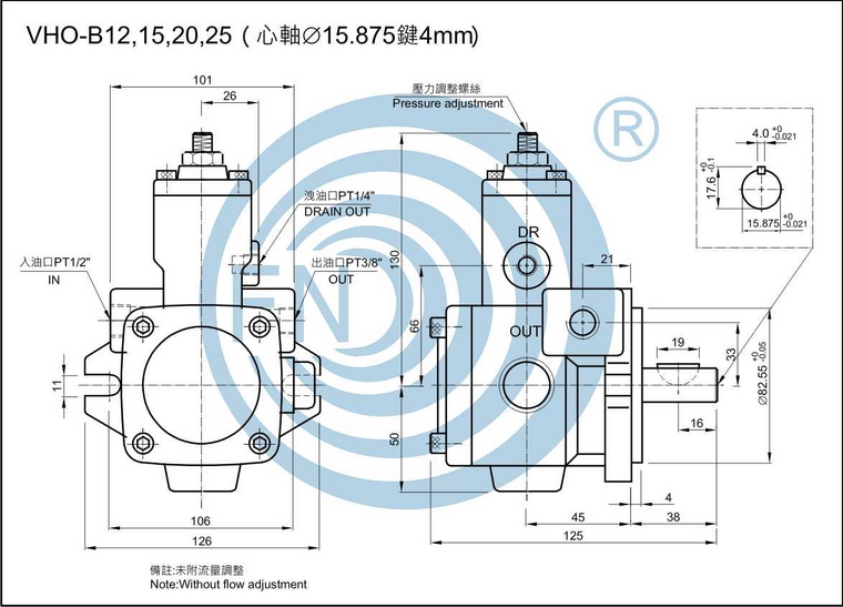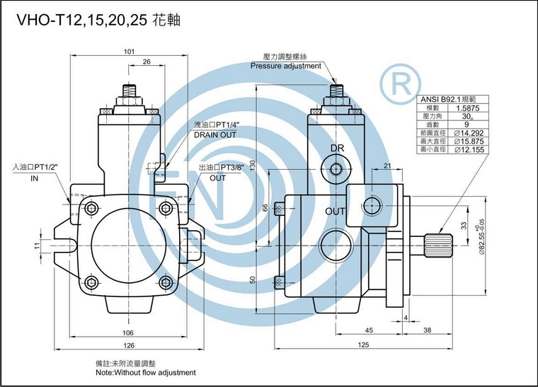 ◆本系列可變?nèi)萘咳~片幫浦,係針對油壓回路之需要油量而設(shè)計,故能提高回路效率,降低騷音,降低油溫,使所輸入之能量,變成有效的功,達(dá)到節(jié)約動力的目的。適用研磨機,CNC數(shù)控自動車床、工作母機、製鞋機械及其他各種專用機或單能機。另有7齒、9齒花鍵軸及專用配套電機。 ◆型式號碼表示法 / MODEL NUMBER DESIGNATON VHO──F──20──A2?–?? –T9?