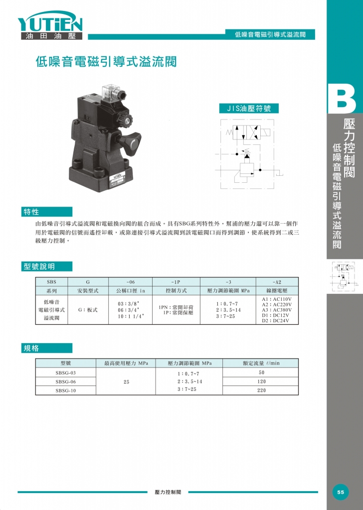 YUTIEN油田壓力控制閥 SBG系列 低噪音引導式溢流閥-YUTIEN油田