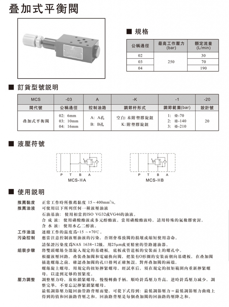 NORTHMAN北部精機(jī)疊加閥 MCS-02,03,04系列疊加式平衡閥