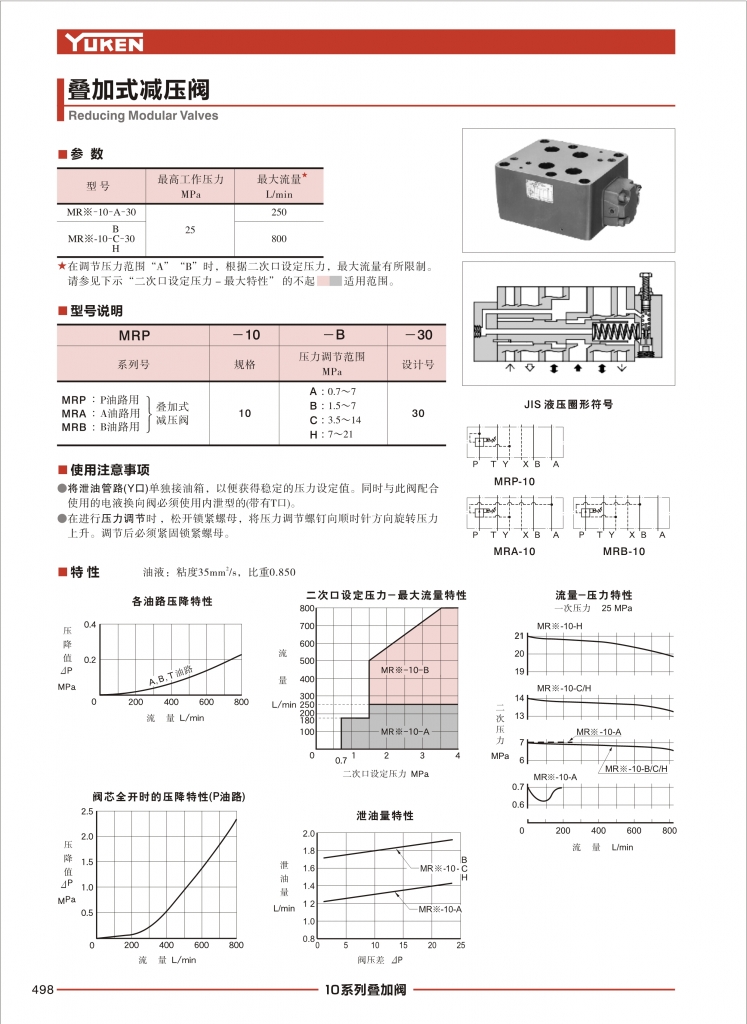 YUKEN油研疊加閥 MRP,MRA,MRB-10系列疊加式減壓閥