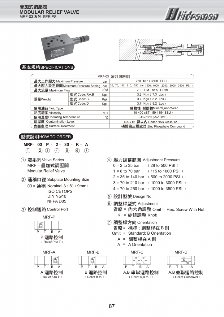 HIDRAMAN海德門疊加閥 MRF-02,03系列疊加式調(diào)壓閥