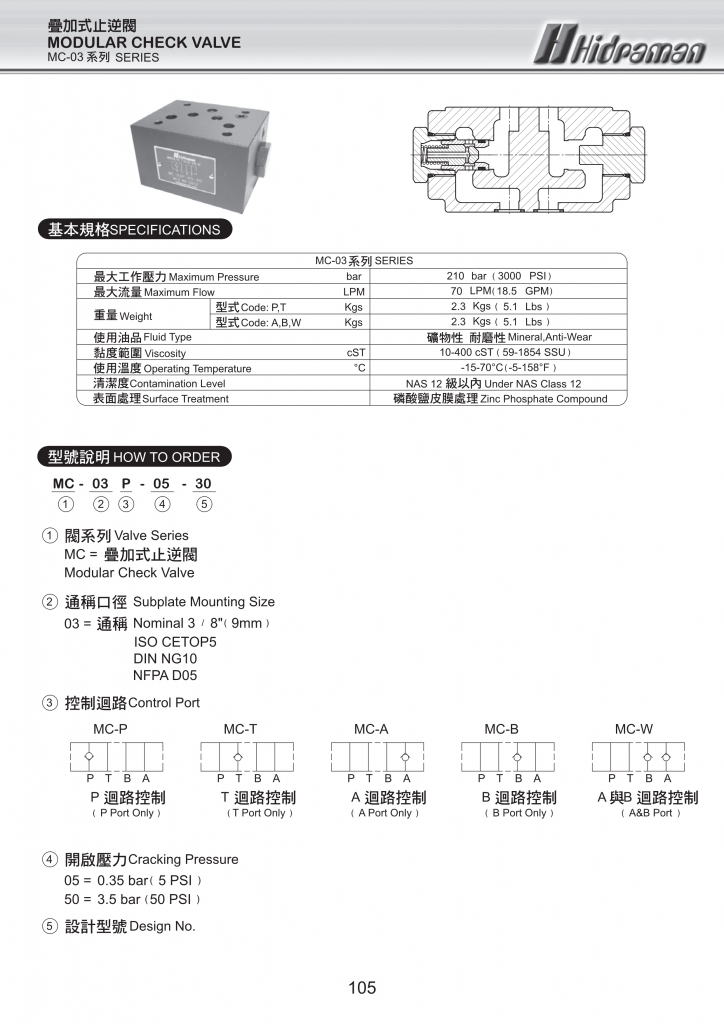 HIDRAMAN海德門疊加閥 MC-02,03系列疊加式止逆閥