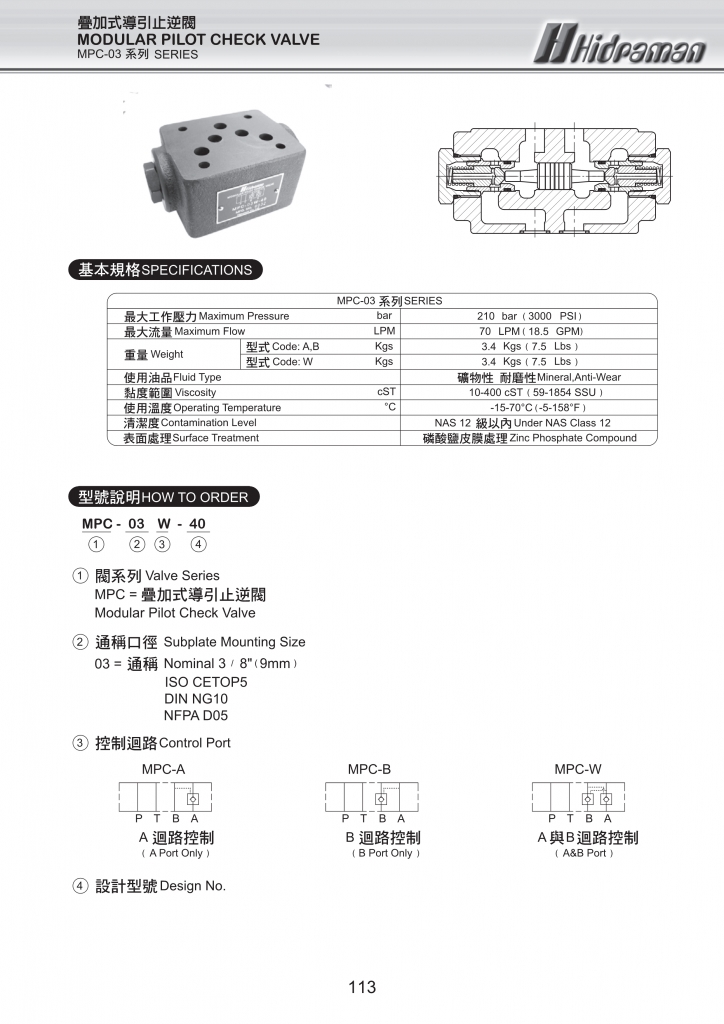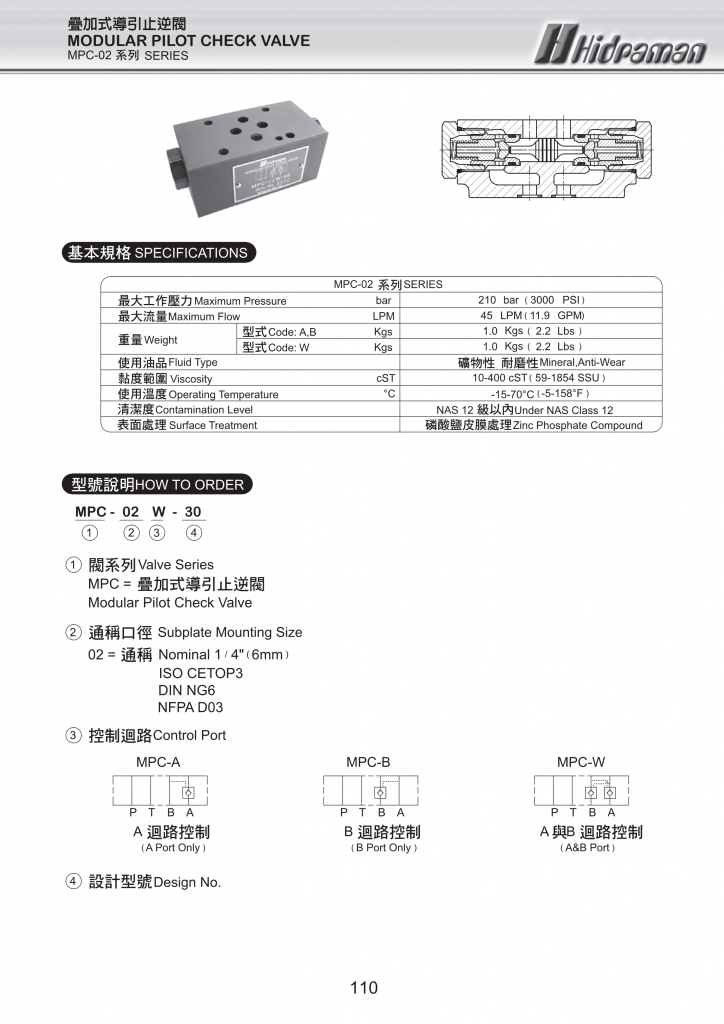 HIDRAMAN海德門(mén)疊加閥 MPC-02,03系列疊加式引導(dǎo)止逆閥
