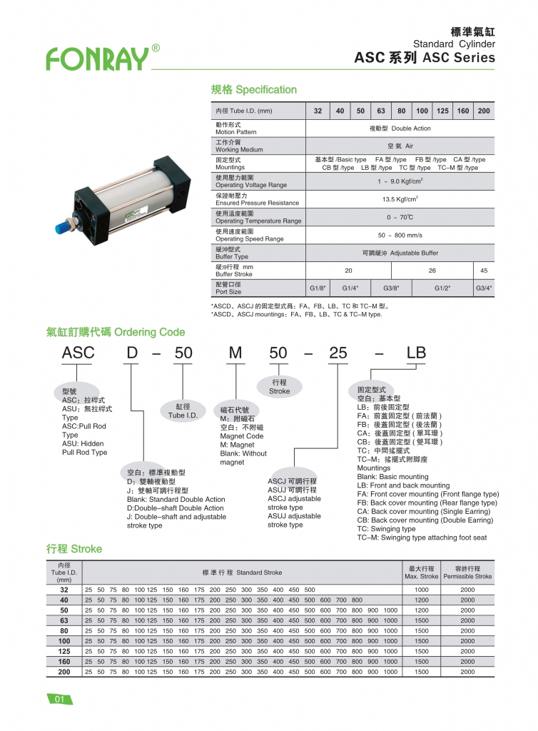 | ASC標(biāo)準(zhǔn)汽缸系列 | 32 40 50 63 80 100 125 160 200 |