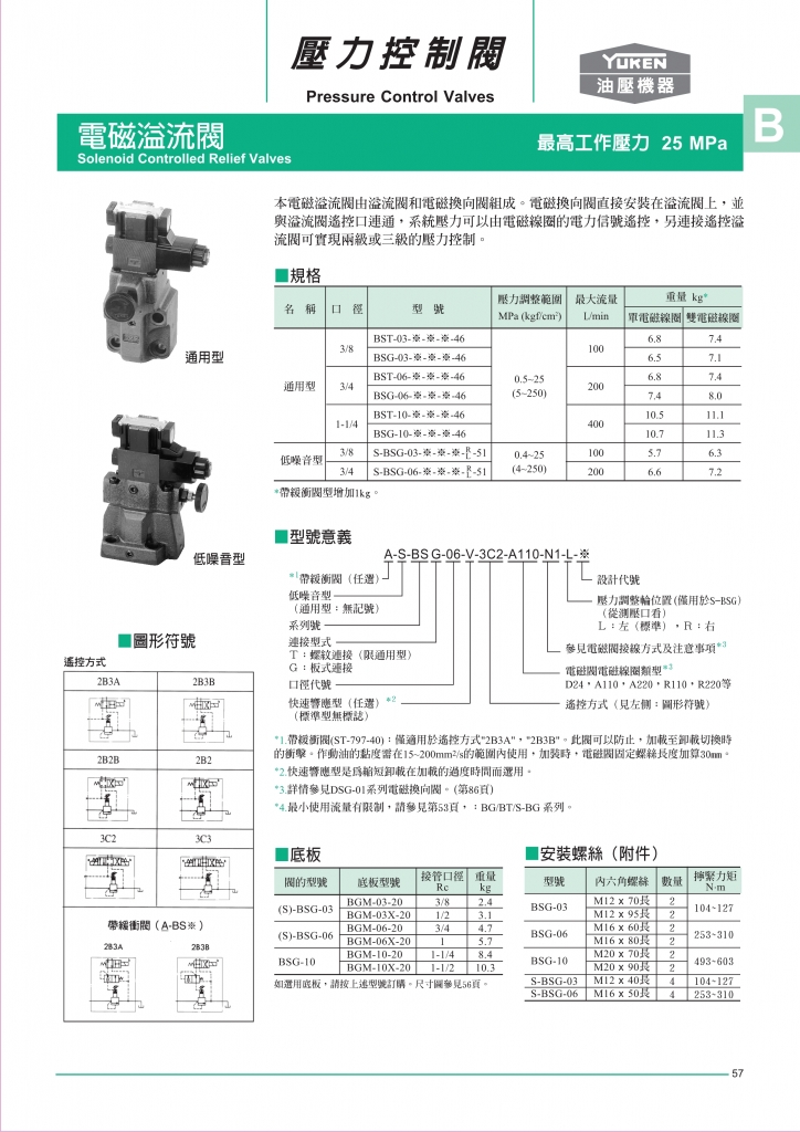 YUKEN油研壓力控制閥 S-BSG-03,06低噪聲電磁溢流閥