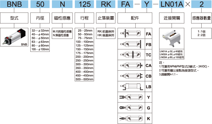 標(biāo)準(zhǔn)行程 (mm) 25, 50, 75, 100, 125, 150, 175, 200, 250, 300, 350, 400, 450, 500