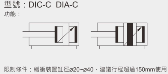 可裝置感應磁圈及可調式端點緩沖.HINAKA氣缸 DIA-C—無尾緩沖加長型/DIC-C—有尾緩沖加長型