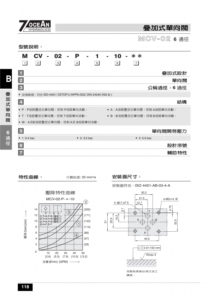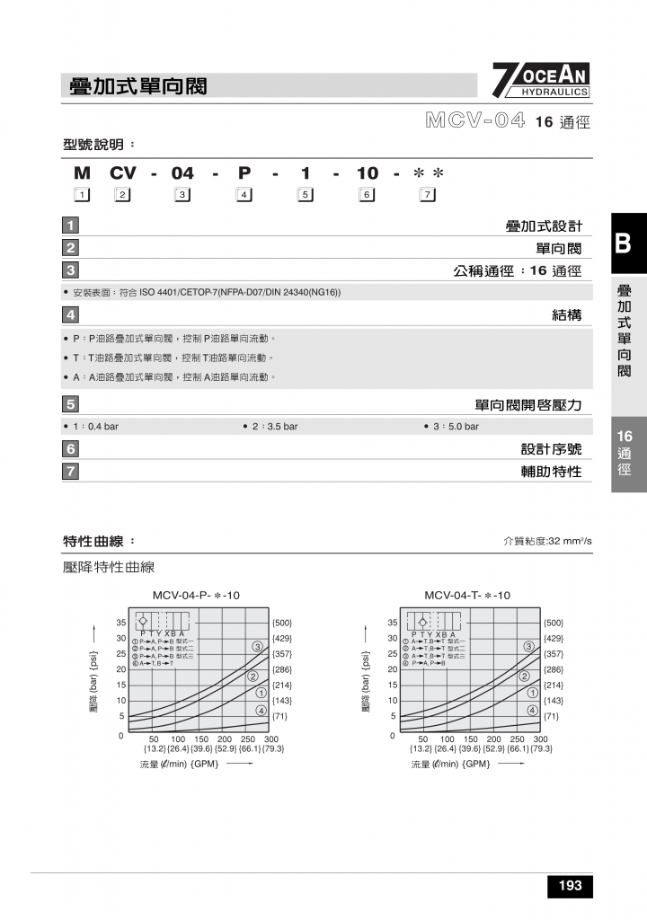 7OCEAN七洋疊加閥 MCV-02,03,04系列疊加式單向閥