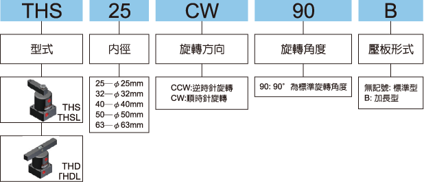 ● 本油壓轉(zhuǎn)角下壓缸為下拉式油壓缸,並有五種規(guī)格及兩種可360°任意安裝之壓板供選擇。