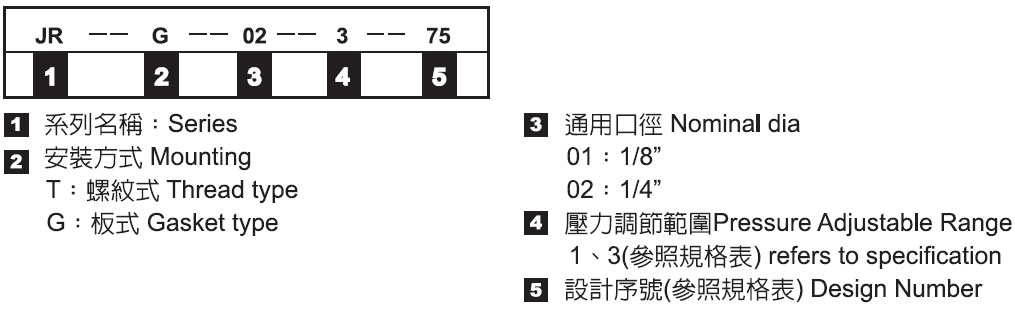 | JR-G01-1(3) | 1/8” | 2 | *-70 (80 – 250) |
