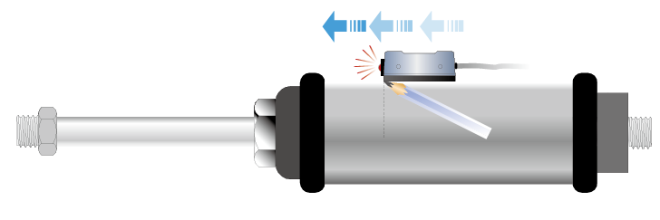 當(dāng)氣壓缸動(dòng)作,裝置在活塞內(nèi)的磁鐵向磁性傳感器接近時(shí),磁性傳感器內(nèi)的磁簧管將會(huì)感應(yīng)到磁場(chǎng)的變化,使磁簧管的接點(diǎn)閉合而導(dǎo)通電路。