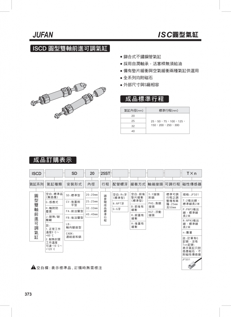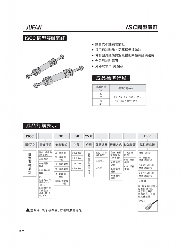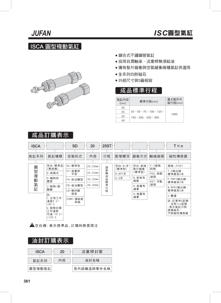 JUFAN君帆氣缸 ISC系列圓形氣缸