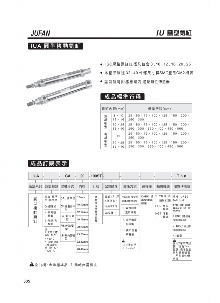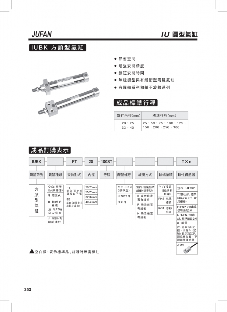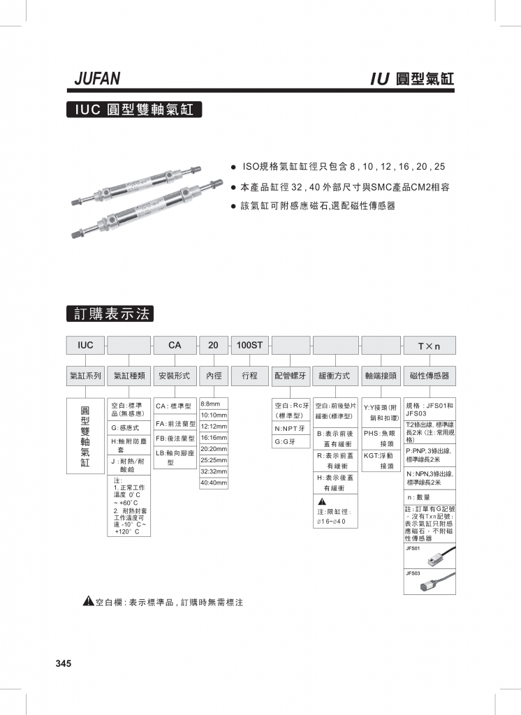 JUFAN君帆氣缸 IU系列ISO-6432系列圓形氣缸