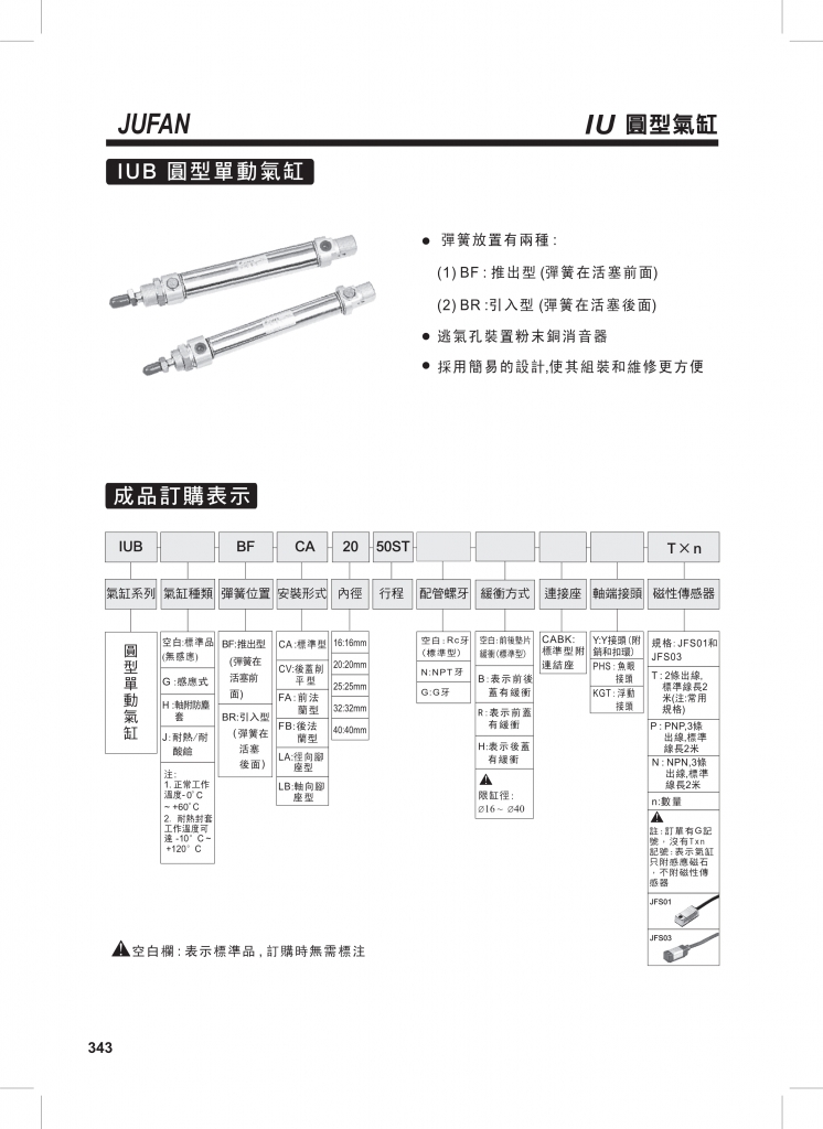 IUA圓形復(fù)動(dòng)氣缸IUB圓形單動(dòng)氣缸IUC圓形雙軸氣缸IUD圓形雙軸前進(jìn)可調(diào)氣缸IUT剎車(chē)氣缸IUK圓形空油作動(dòng)氣缸IUBK方頭型氣缸