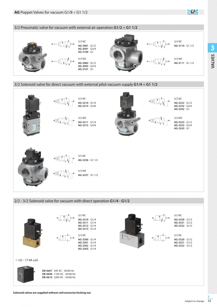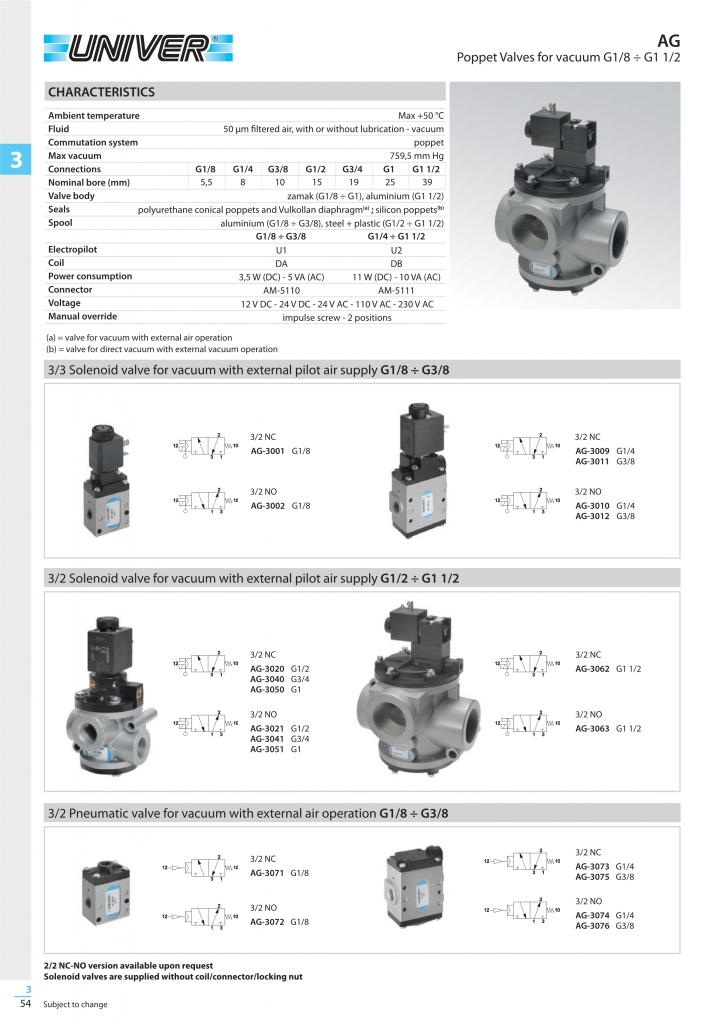 SERIES AG Poppet valve for vacuum 3/2 – G1/8” ÷ G 1?”